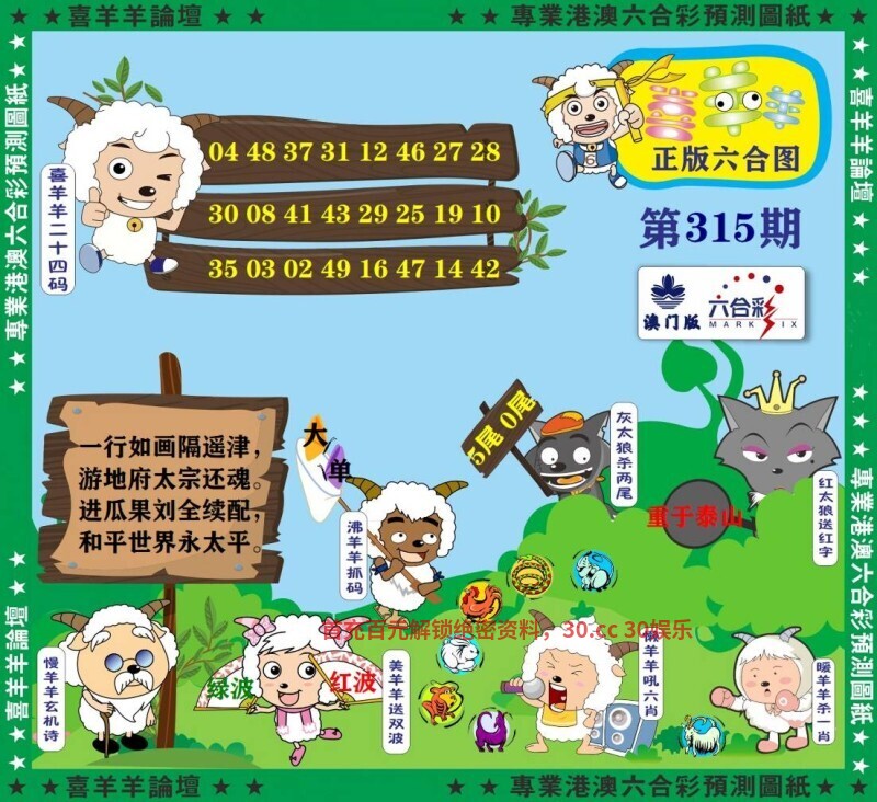 | 315期平特:☃️【狗狗狗】☃️ 315期二连:【狗猪】【羊猴】 315期三连:【狗猪牛】【羊猴虎】 |